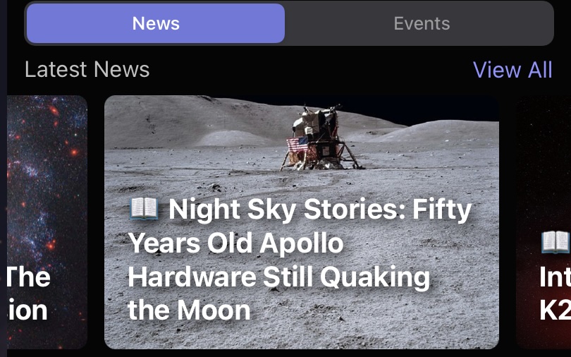 The Widgets, Stargazing Conditions, Night Sky Tonight and Night Sky News features all require an Internet connection to function. Satellite data is occasionally updated in the background and this also requires an internet connection. Night Sky can still be used without an internet connection but the app’s functionality will be reduced.