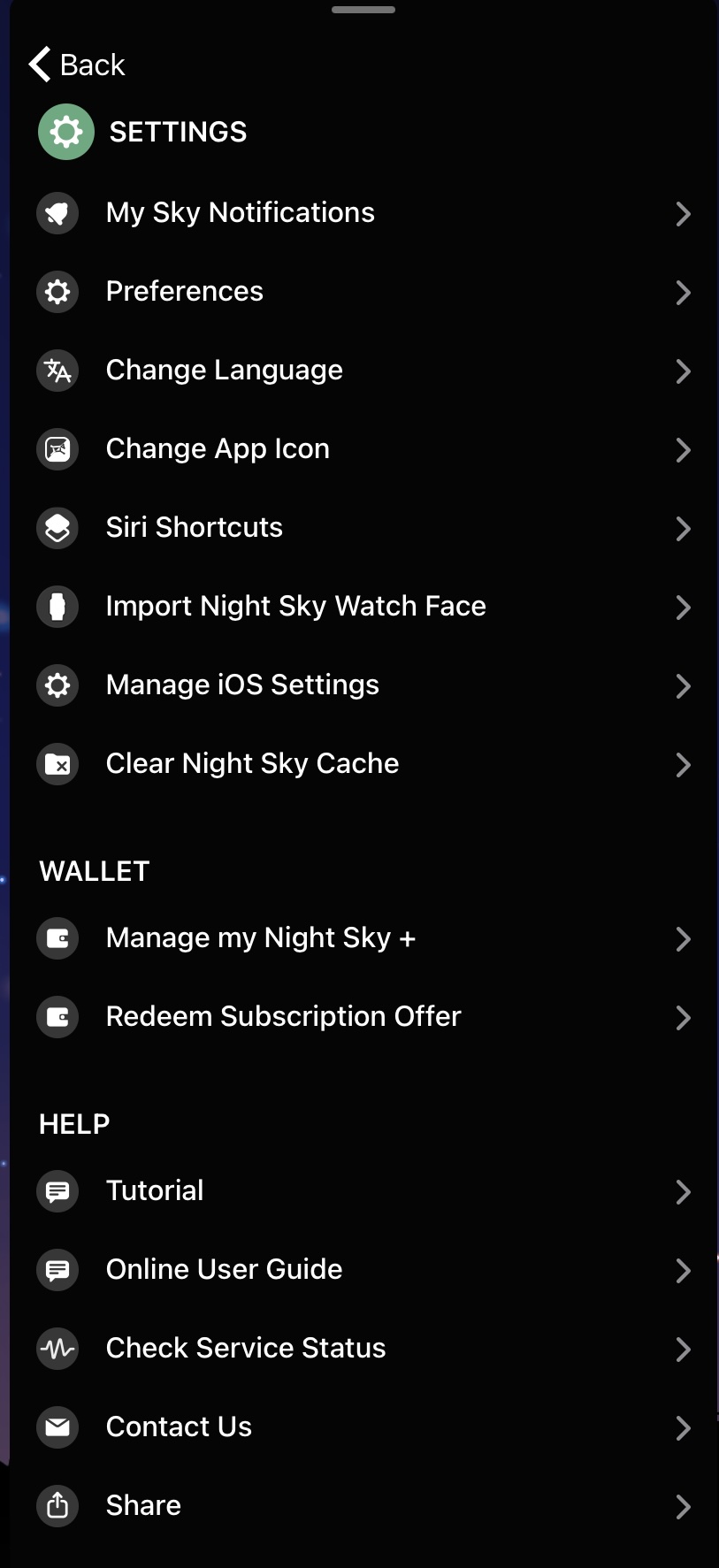 If Night Sky isn’t working properly, you can quit the app and then try to restart it. Restarting Night Sky may resolve the problem.