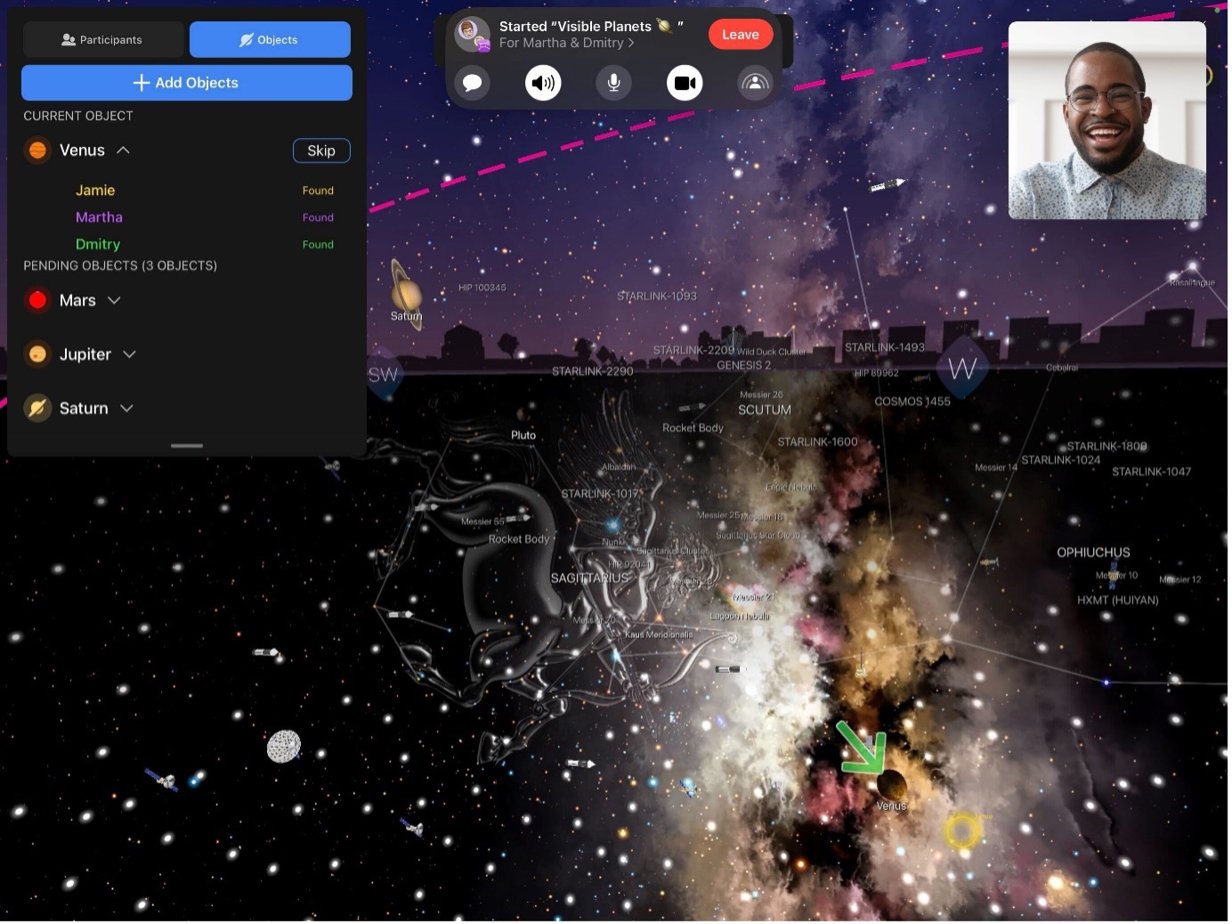 Touching this button connects to other users’ devices so your friends and family can share the Planetary Portals experience.