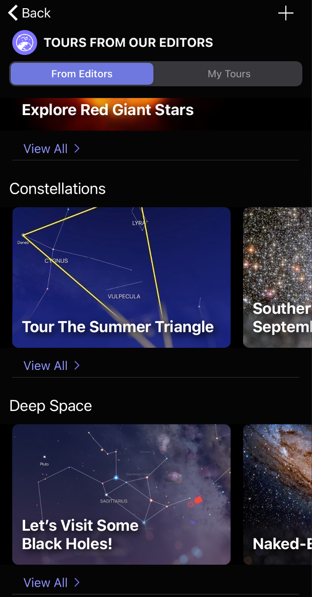 You can personalise Night Sky by labelling objects or features in Sky View with a coloured Sky Tag for future reference. Night Sky will remember your Tags and they will be displayed in Sky View and be included in Sky Tours. Night Sky’s Search function can find your Sky Tags too. You can also share Sky Tags for other Night Sky users to find with iMessage and other services.