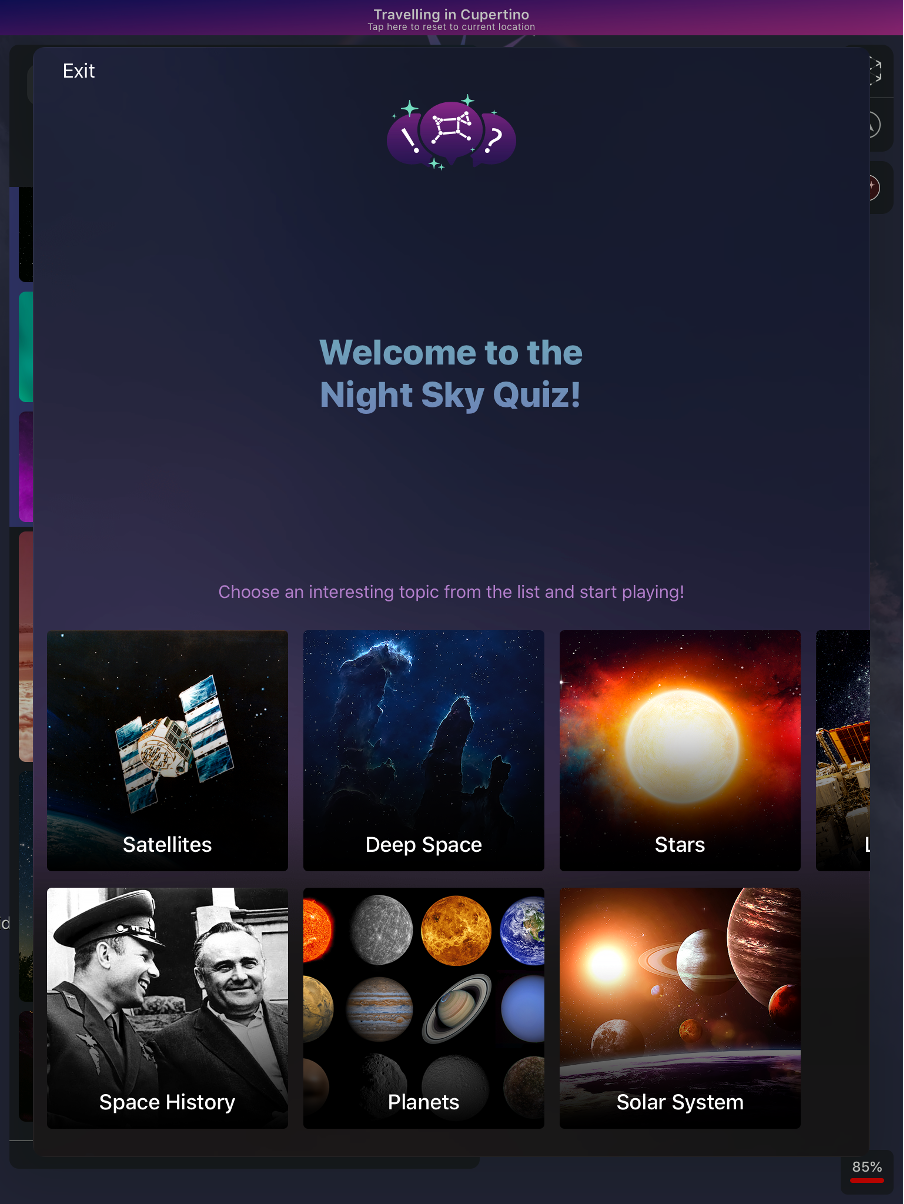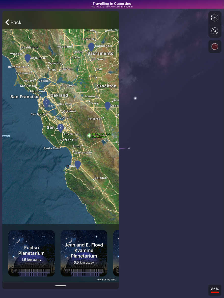 This feature allows you to add augmented reality (AR) “portals” to other locations in the Solar System around your local environment. You can choose portals to the Sun, the planets, dwarf planets and their largest moons.