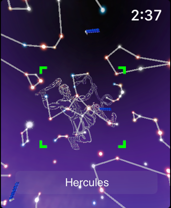Once the Apple Watch has been aligned, Sky View is displayed. Sky view on an Apple Watch is very similar to Sky View on Macs and iOS devices. As you hold up your Apple Watch and move it, the Sky View will move in response.